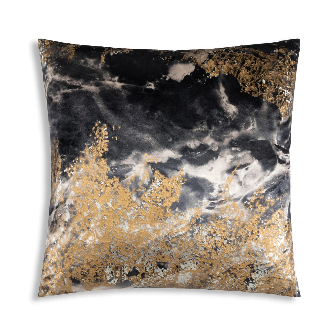 Abstract digital print on velvet ground with gold and silver foil
