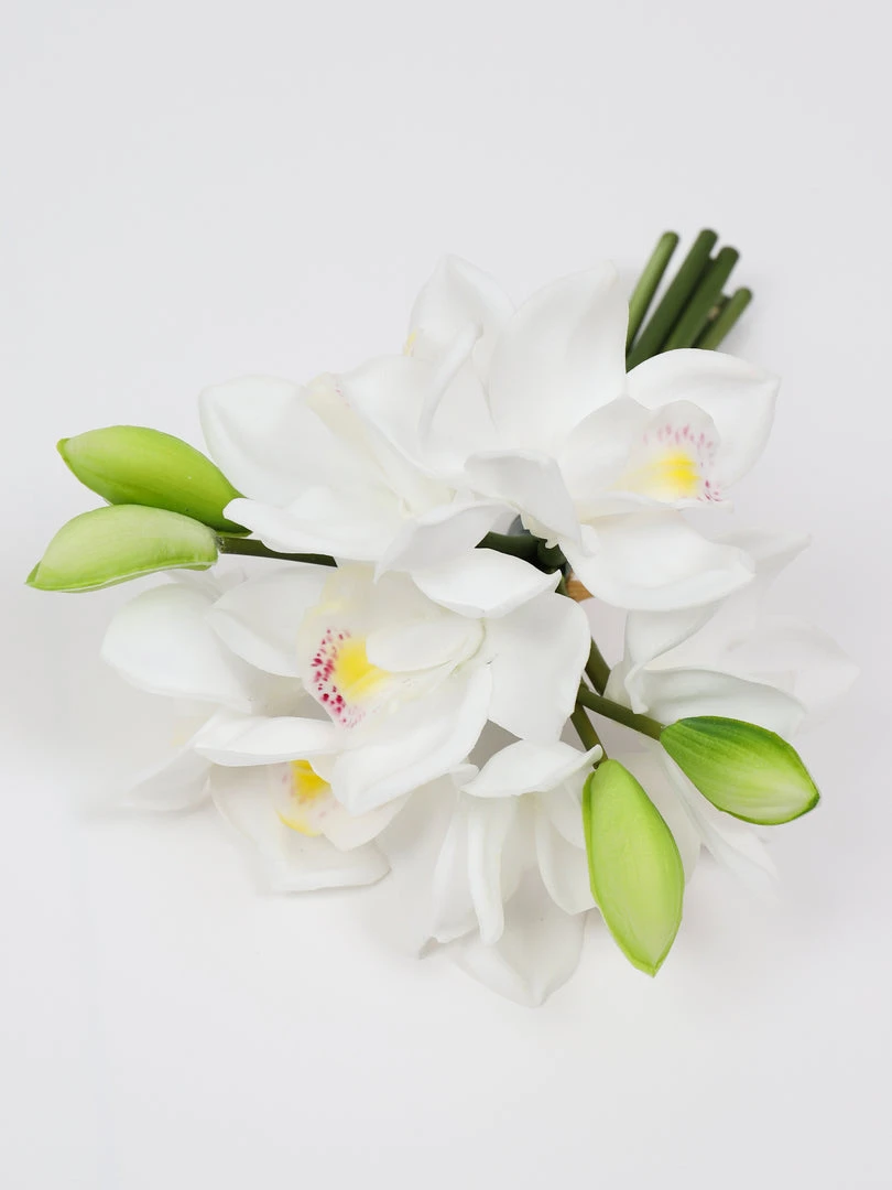 Description: This white orchid bundle has a touch of green and is the perfect reminder that spring is here! This will look lovely in any vase in any room!