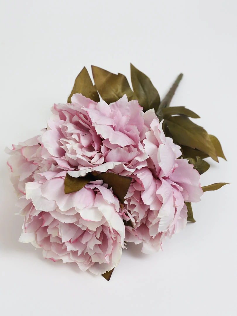 Description: These light purple peonies scream spring! We love the muted tones that are perfect to style in your favorite vase and the soft look that these bring. 5 stems per bundle.