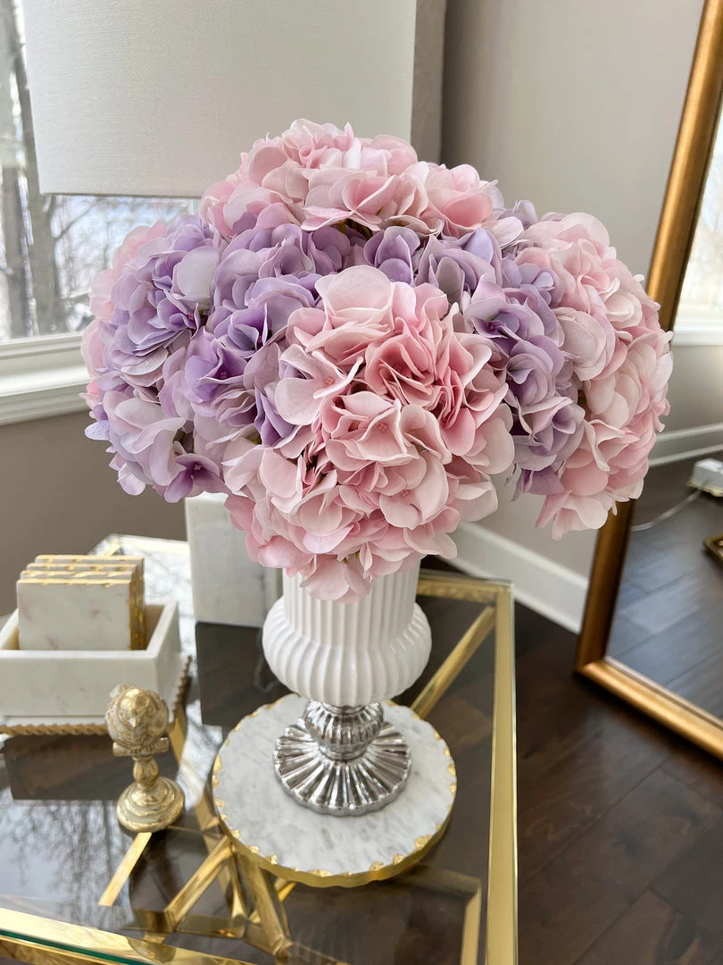 Description: These beautiful Real-Touch Hydrangea Stems come in Pink, Purple, and Blue. Priced for one stem.
