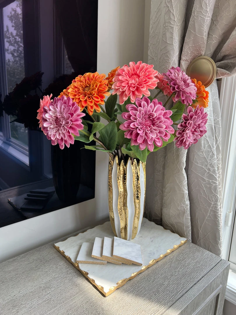 Description: These Dahlia stems feel so real! They are so beautiful in each color and will bring vibrance and life to your space!