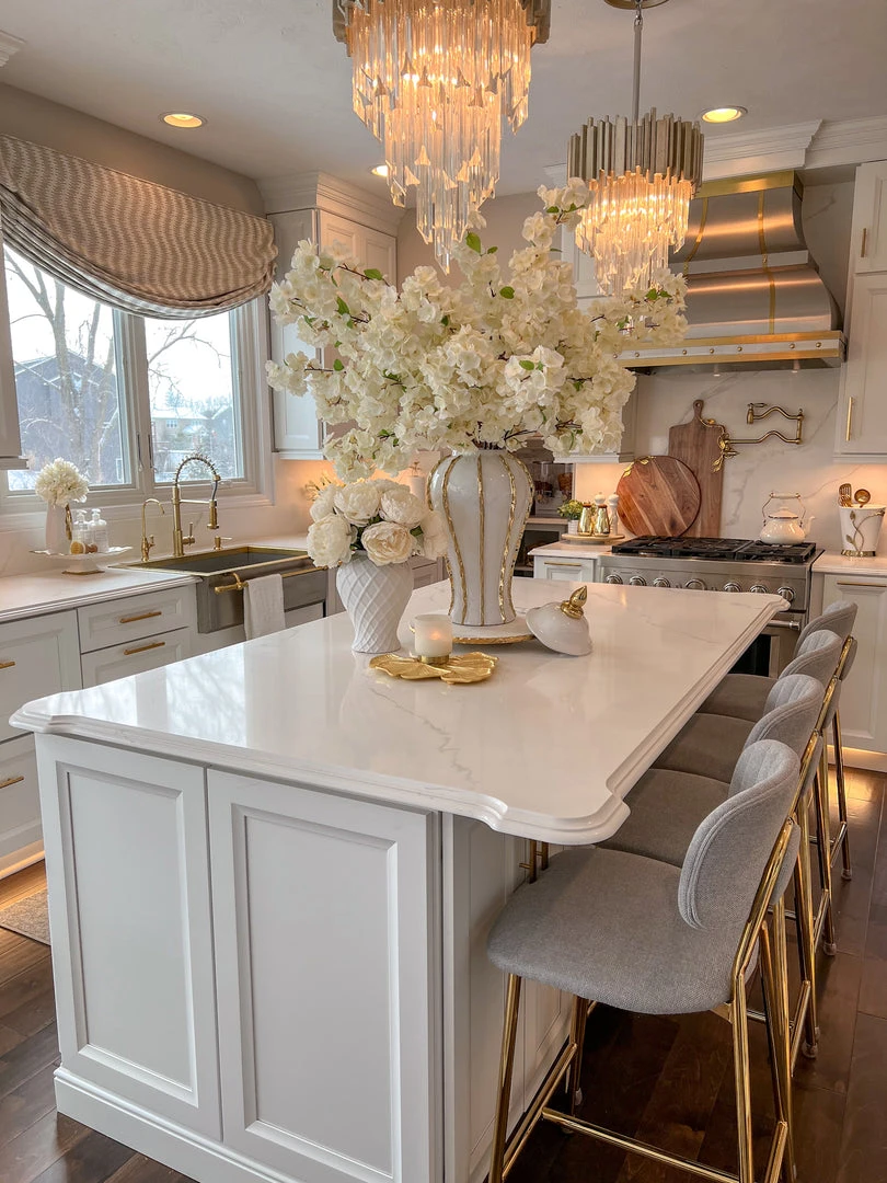 Inspire Me! Home Decor Round Marble Tray With Gold Edge And Metal Details