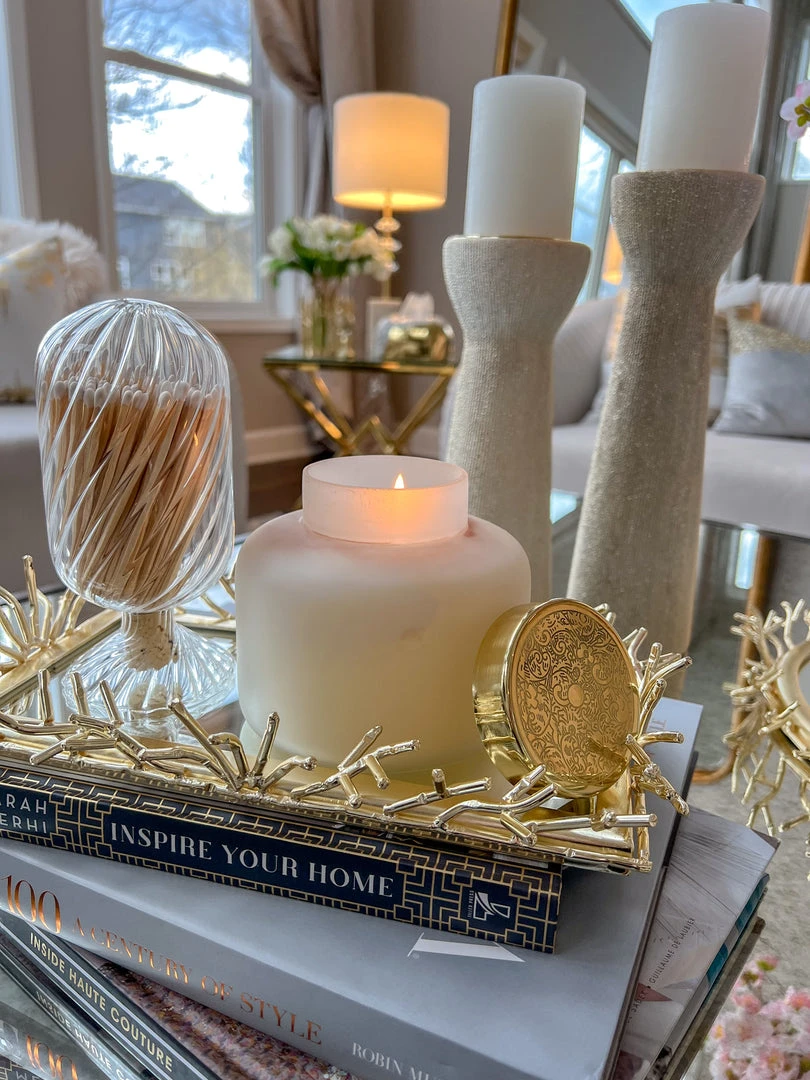 Description: This is a gorgeous frosted candle with a gold decorative detailed lid. The scent is French Vanilla.