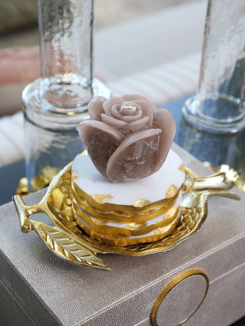 Description: Must-have alert! These stunning rose candles are beautifully crafted, where the entire candle takes on the delicate shape of a beautiful rose, with the wick centered in the beautiful bloom! Available in ivory, beige opaque, black, and blush.