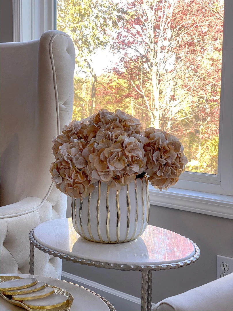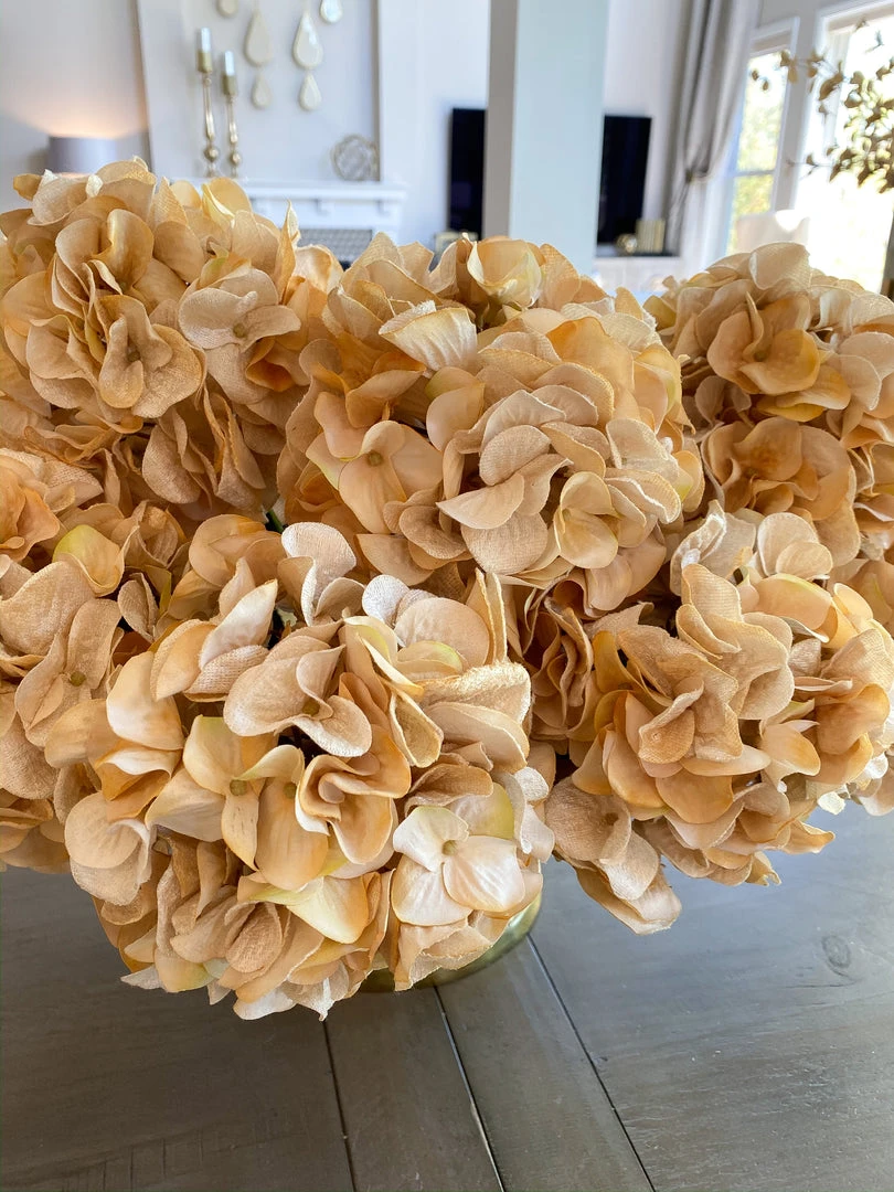 These beautiful Velvet Hydrangea Stems feature a burnt cream color and a warm and cozy texture!