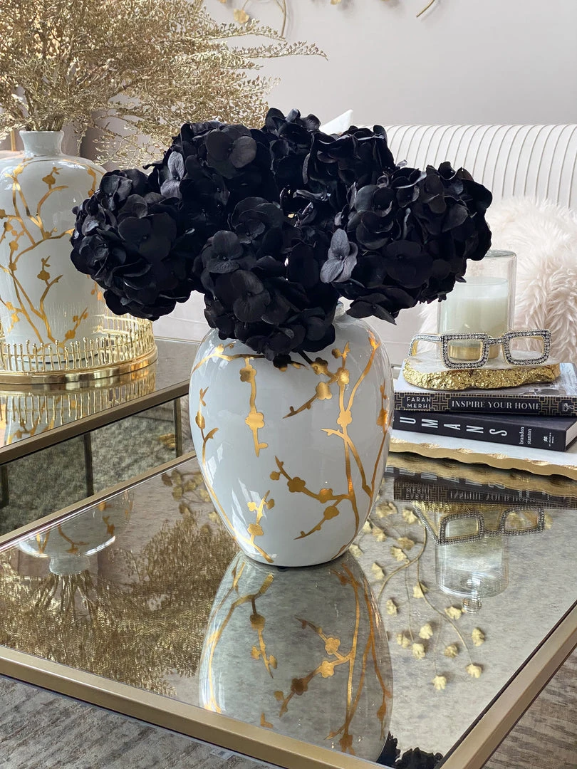 Description: These dramatic black hydrangea stems are the perfect statement piece for your home! Dark and mysterious, this offer an easy way to add a bold touch to any space!