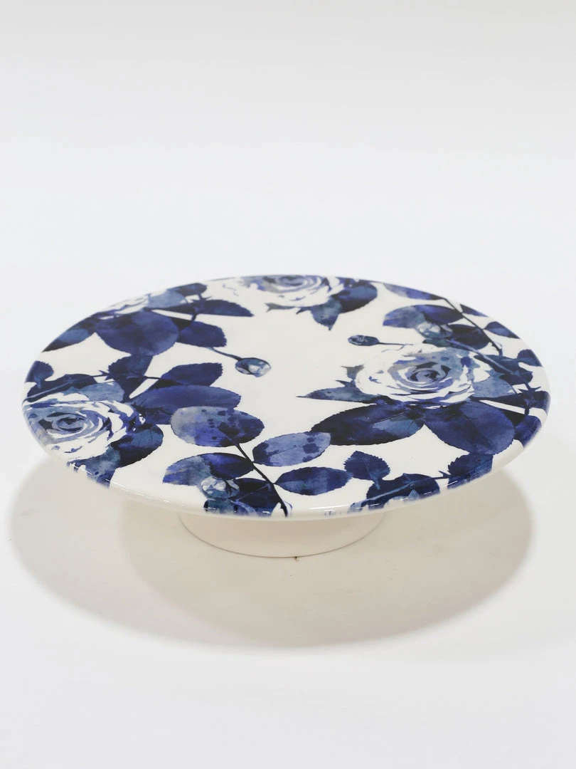 Description: We loving the dazzling blue of this ceramic cake stand! Beautiful floral details make this the perfect item for a spring display!