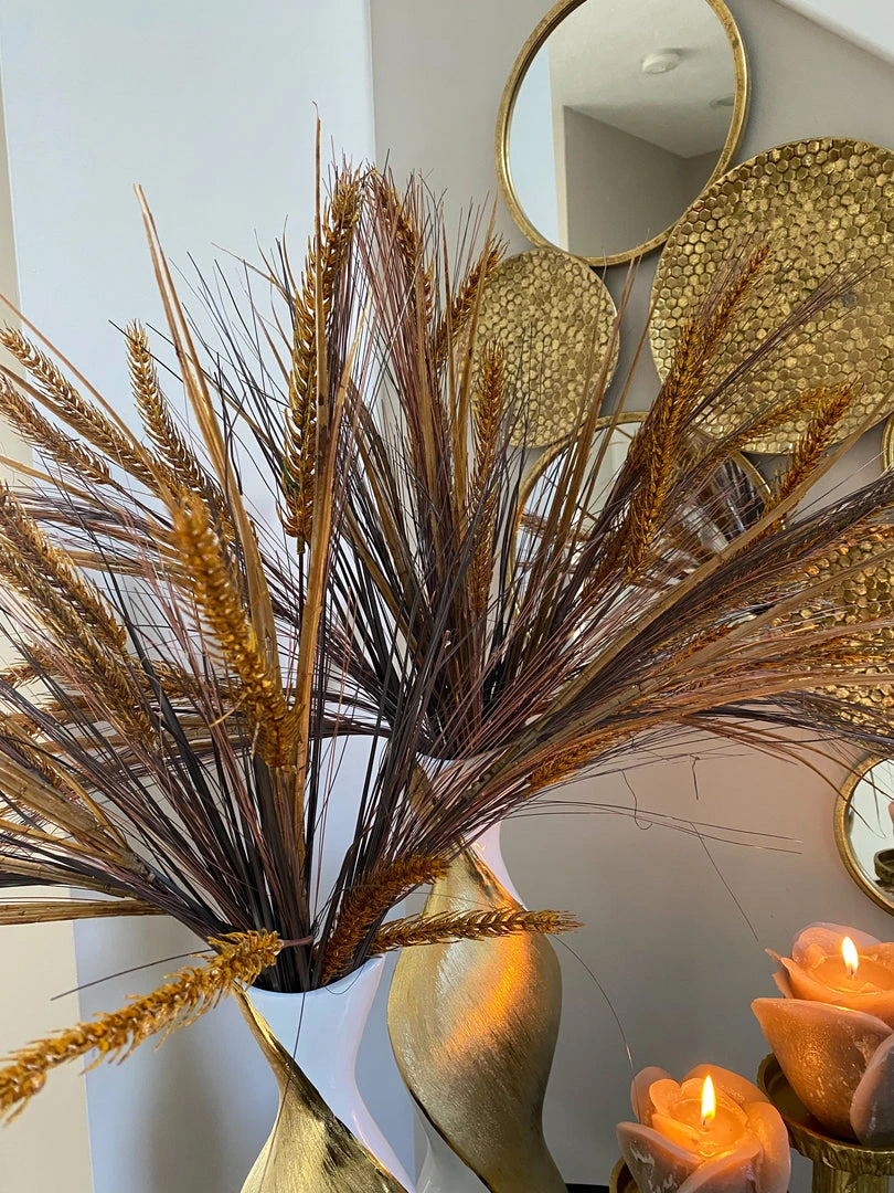 Description: This simple and rustic brown wheat grass stem is the perfect fall floral! Style with your favorite vase and create a unique look!