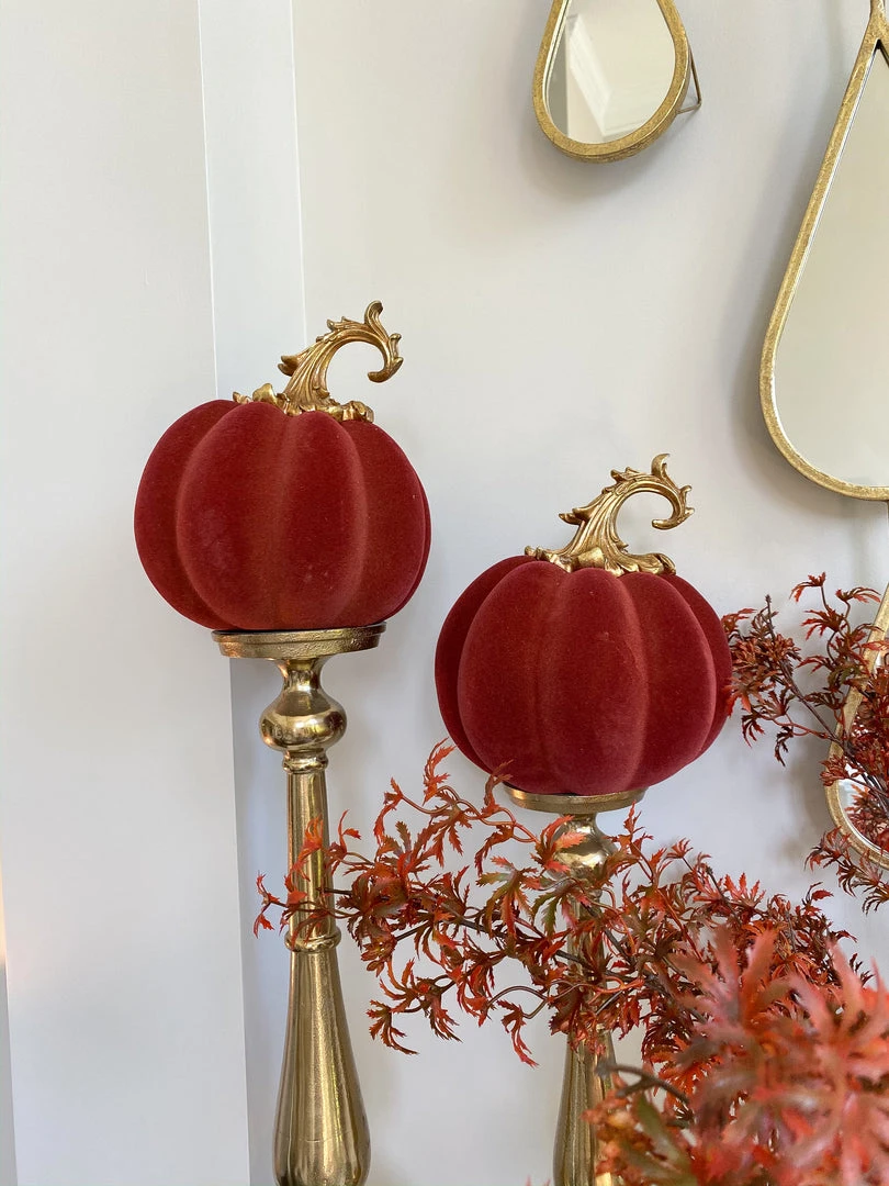Description: These mini velvet pumpkins are the definition of fall! We love styling them in our bowls or on our trays! This unique burnt orange color is so fun to style for fall!