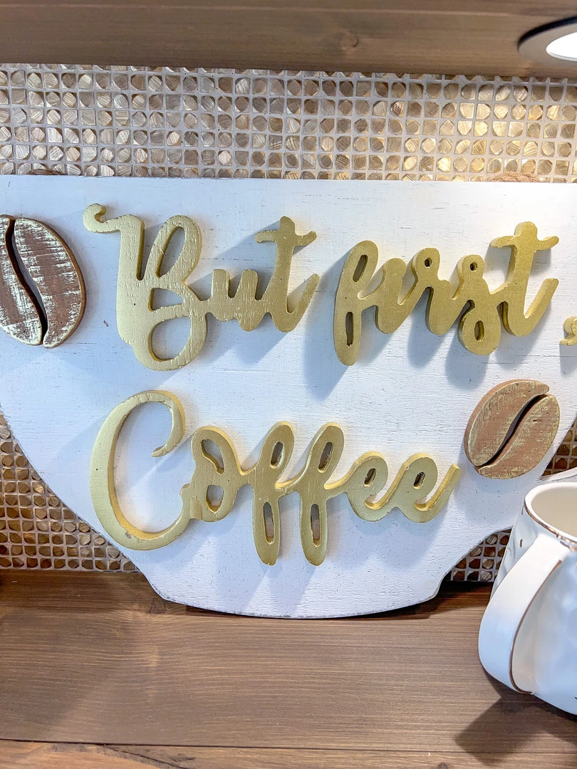 Description: This is another IMHD favorite! We love this painted wood coffee sign! Perfect to display in your coffee station or to hang in your kitchen.