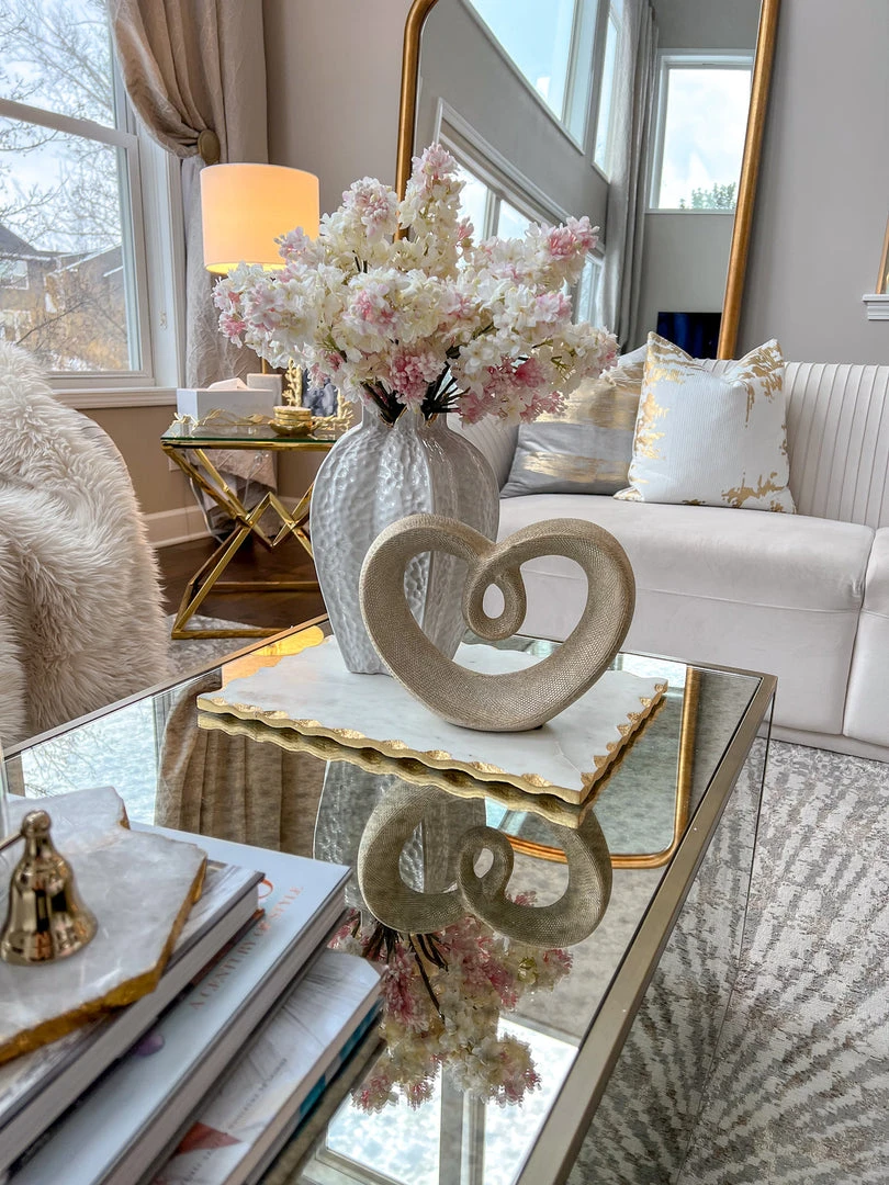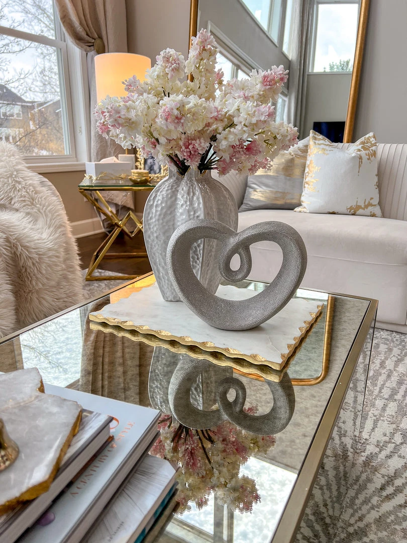 Inspire Me! Home Decor Large Rectangular Marble Tray With Cherry Blossom Details