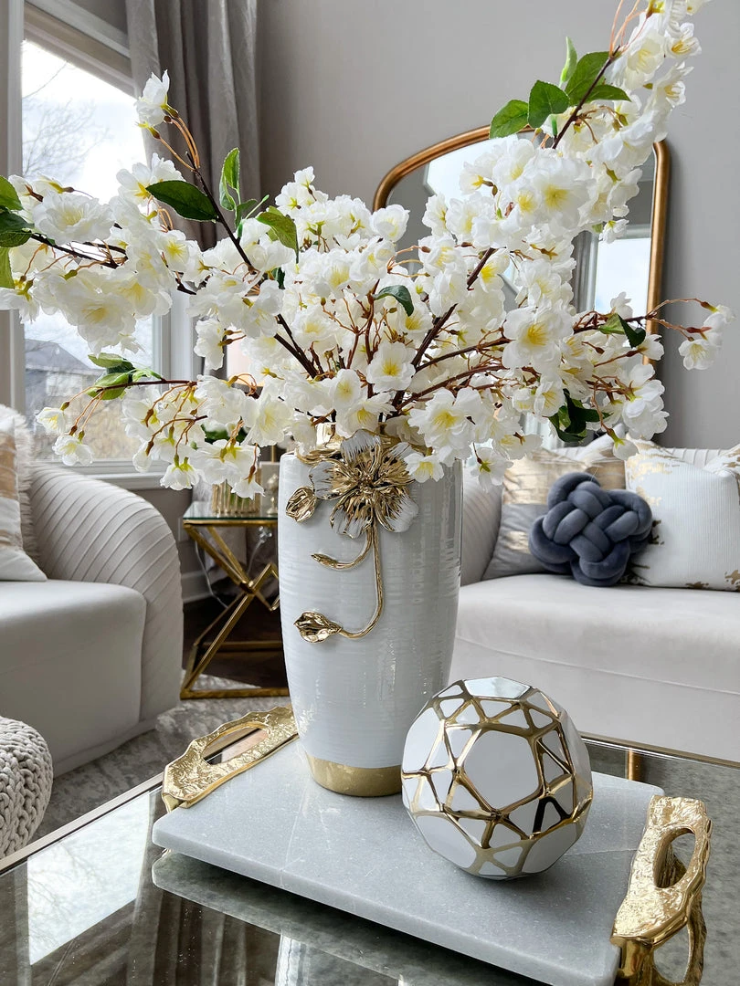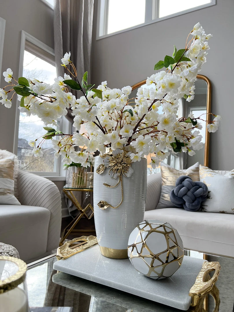 Inspire Me! Home Decor White Ceramic Candle Holder With Gold Elegant Details (2 Sizes)