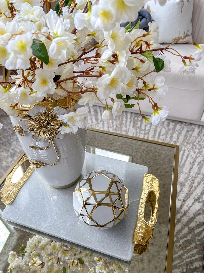 Inspire Me! Home Decor Rectangular Marble Tray With Cherry Blossom Details
