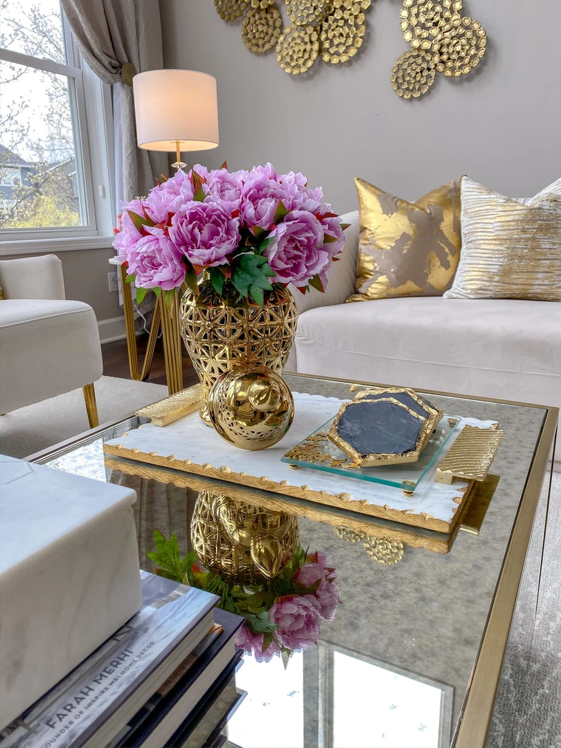 Inspire Me! Home Decor Round Marble Tray With Gold Edge And Metal Details