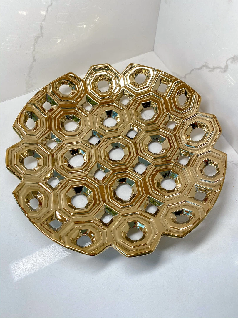 Description: Highlight your dinner plates with this glamorous detailed circle shaped charger.