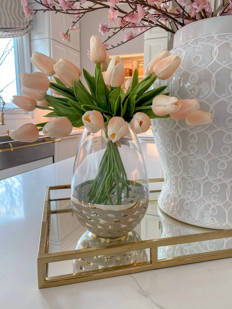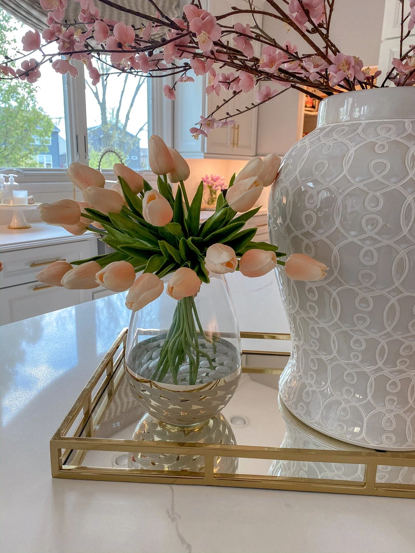 Inspire Me! Home Decor Large Rectangular Marble Tray With Cherry Blossom Details