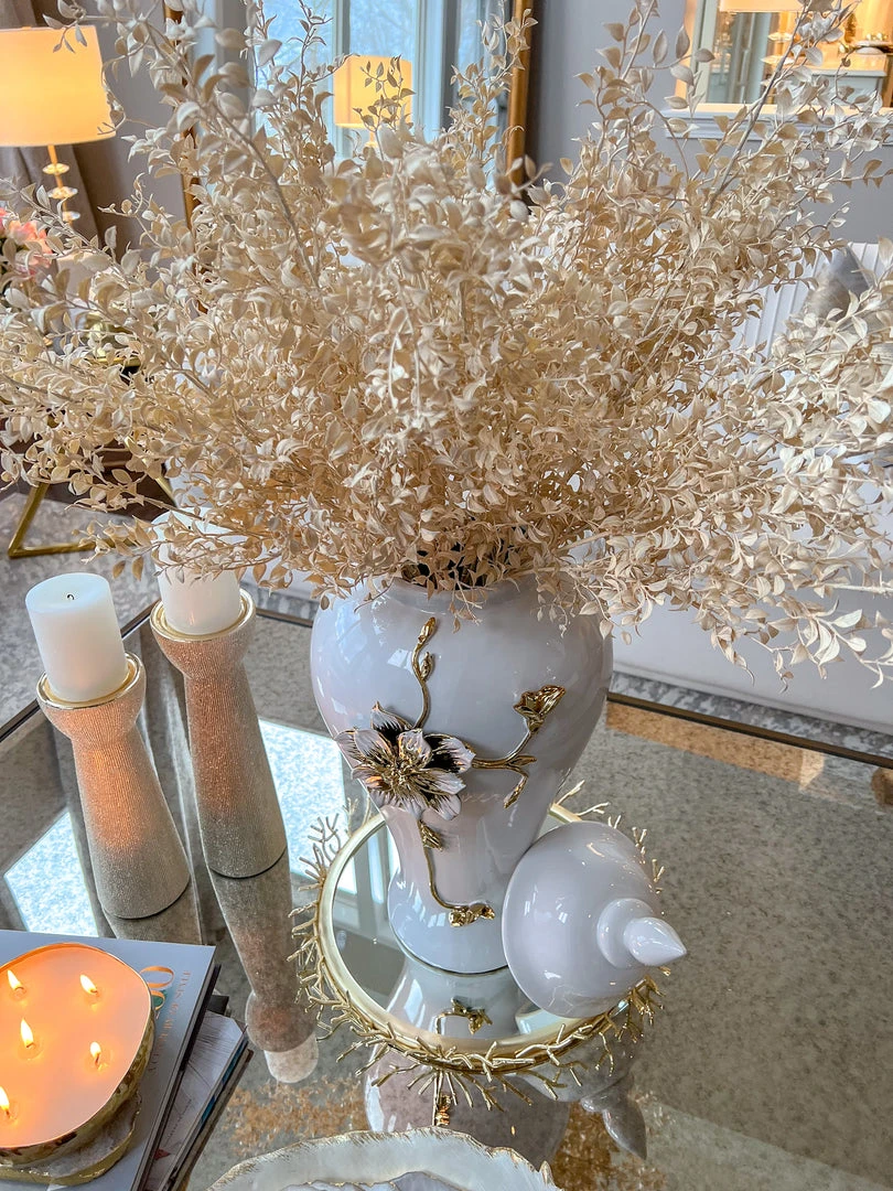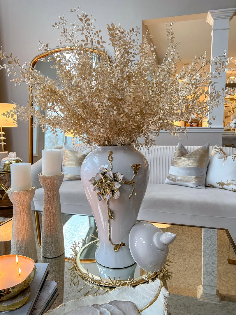 Inspire Me! Home Decor White Ceramic Vase With Stunning Gold Floral Detailed Center