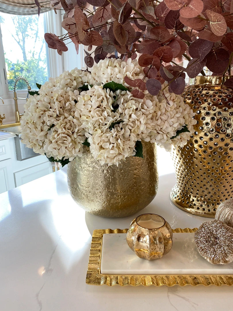 Description: This hydrangea features a light cream color for a stunning look during any season. Style in a bowl or vase for a elegant look in your space.