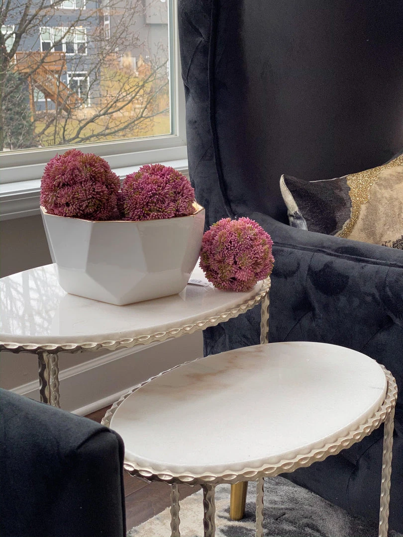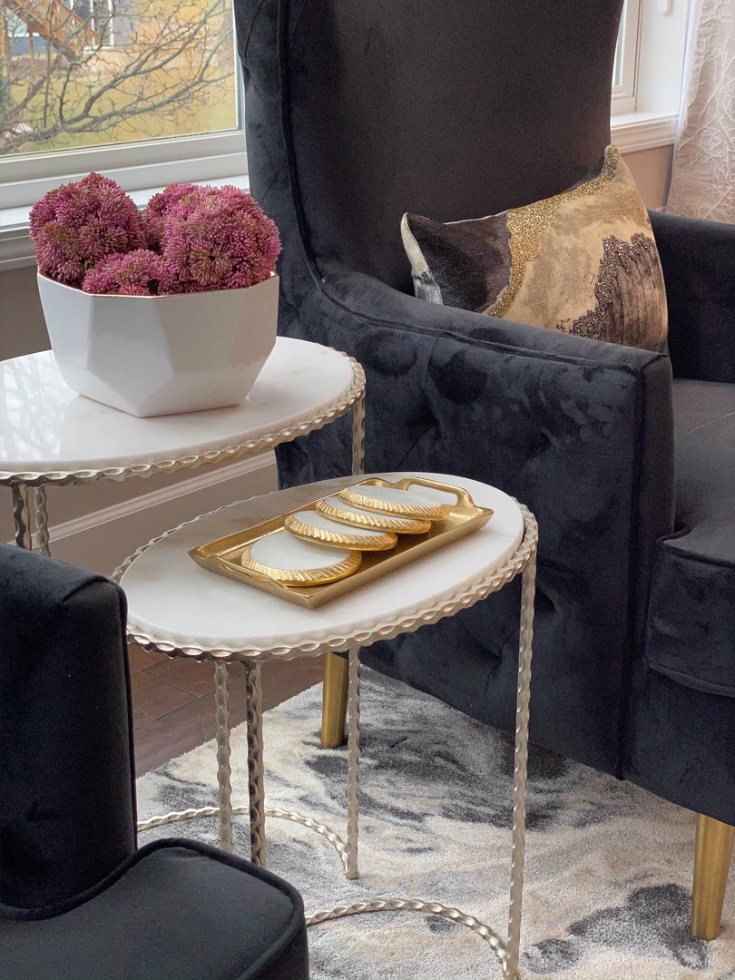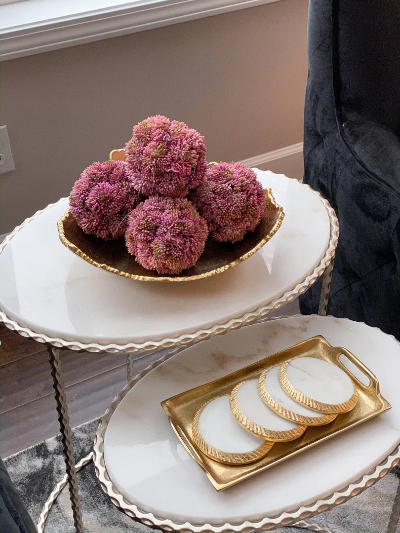 Inspire Me! Home Decor Round Marble Tray With Gold Edge And Metal Details