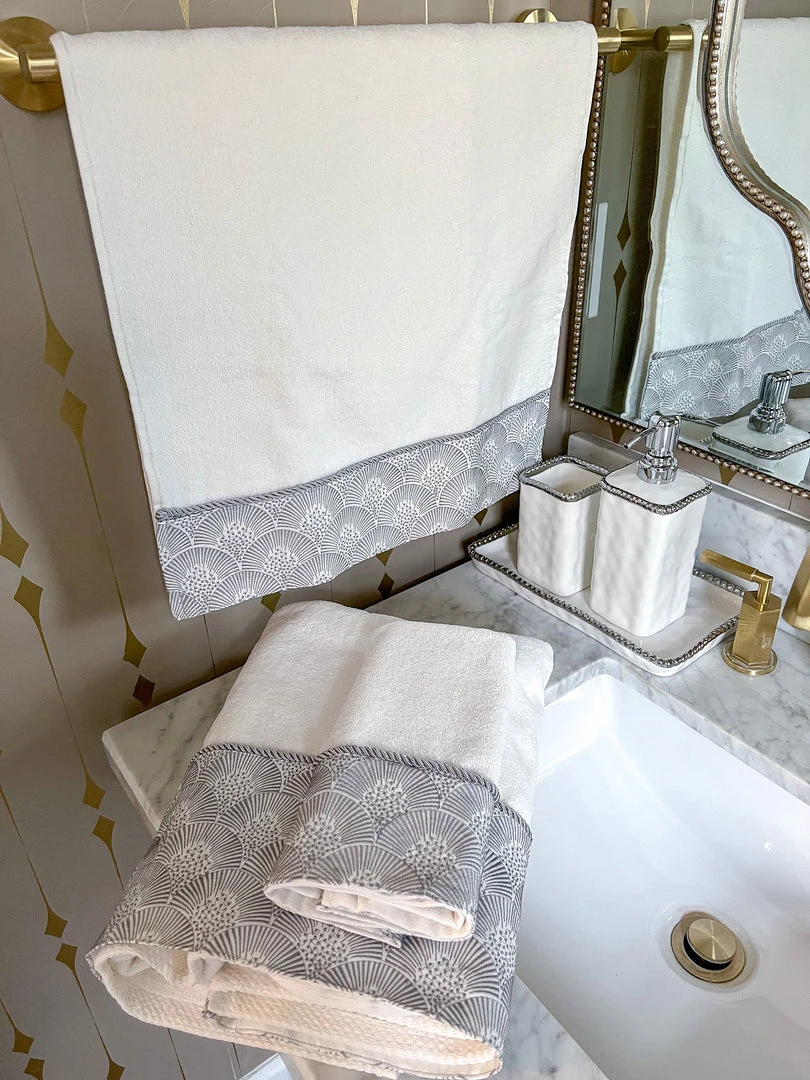 Description: This is a beautiful white soft towel that has gorgeous shell scalloped details.