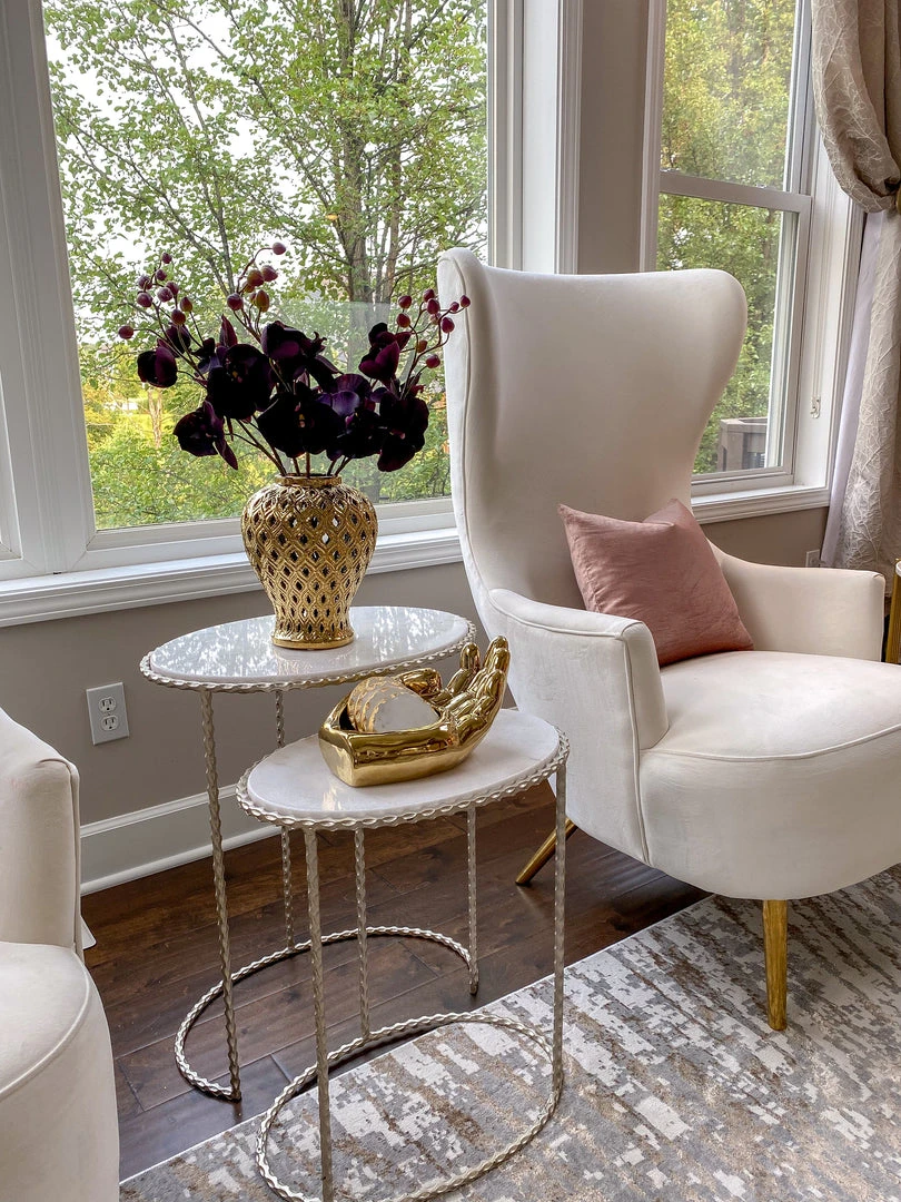 Inspire Me! Home Decor Round Marble Tray With Gold Edge And Metal Details
