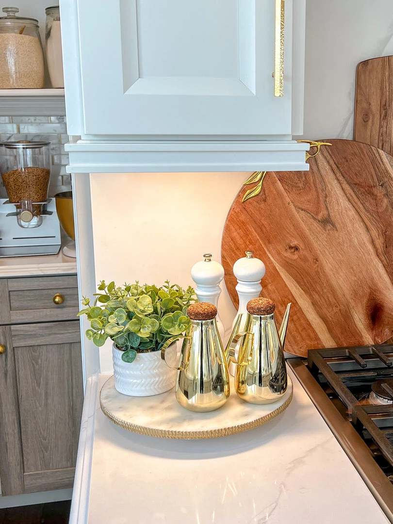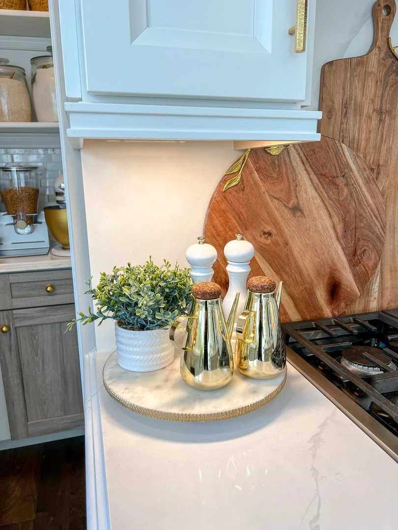 Inspire Me! Home Decor Round Marble Tray With Gold Edge And Metal Details