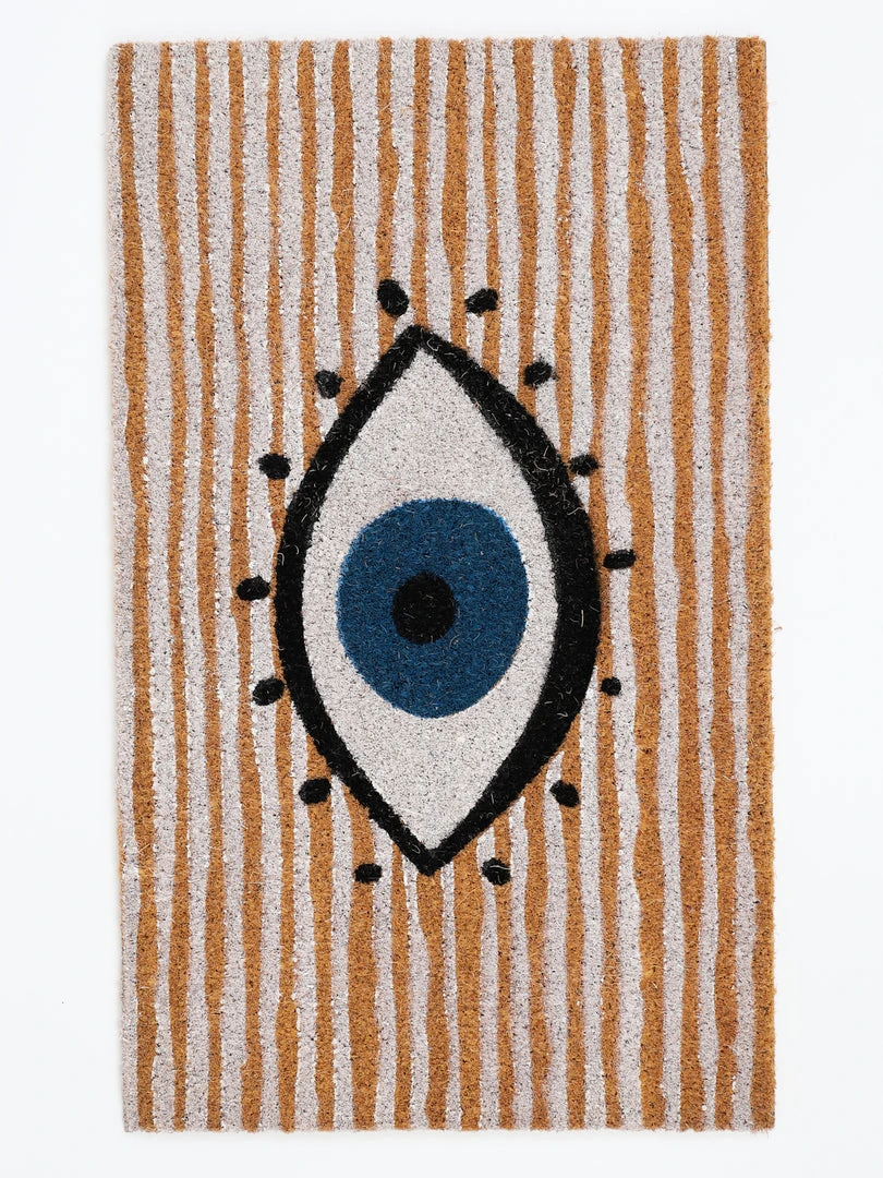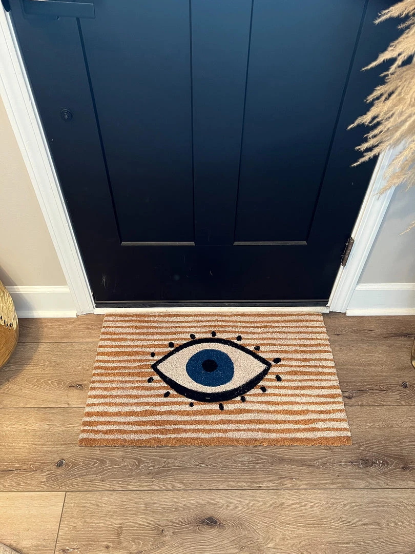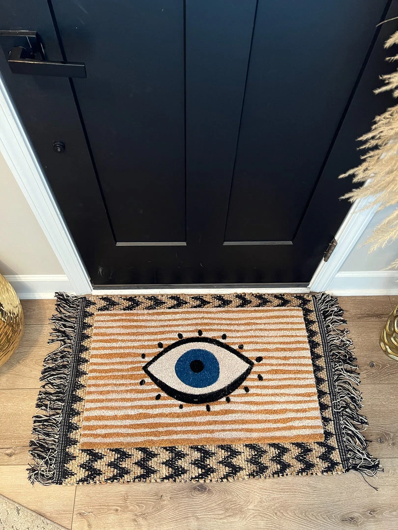 Description:Â This rectangular doormat features a natural background with a unique evil eye pattern that creates an inviting entryway to your home.