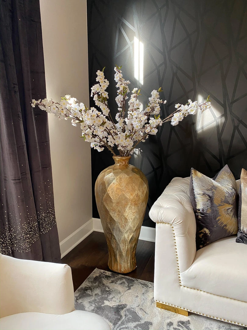 This cherry blossom stem is a very substantial piece. This stem is perfect for tall vases to make a big and bright statement in any room.