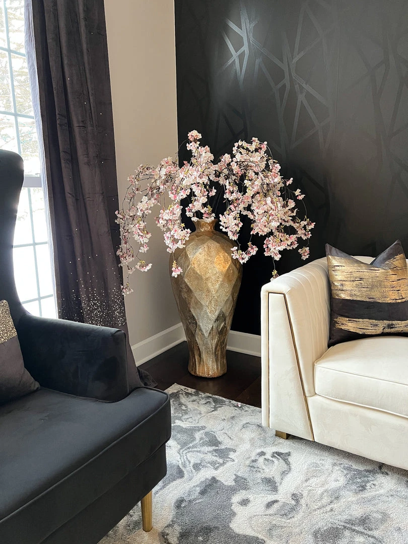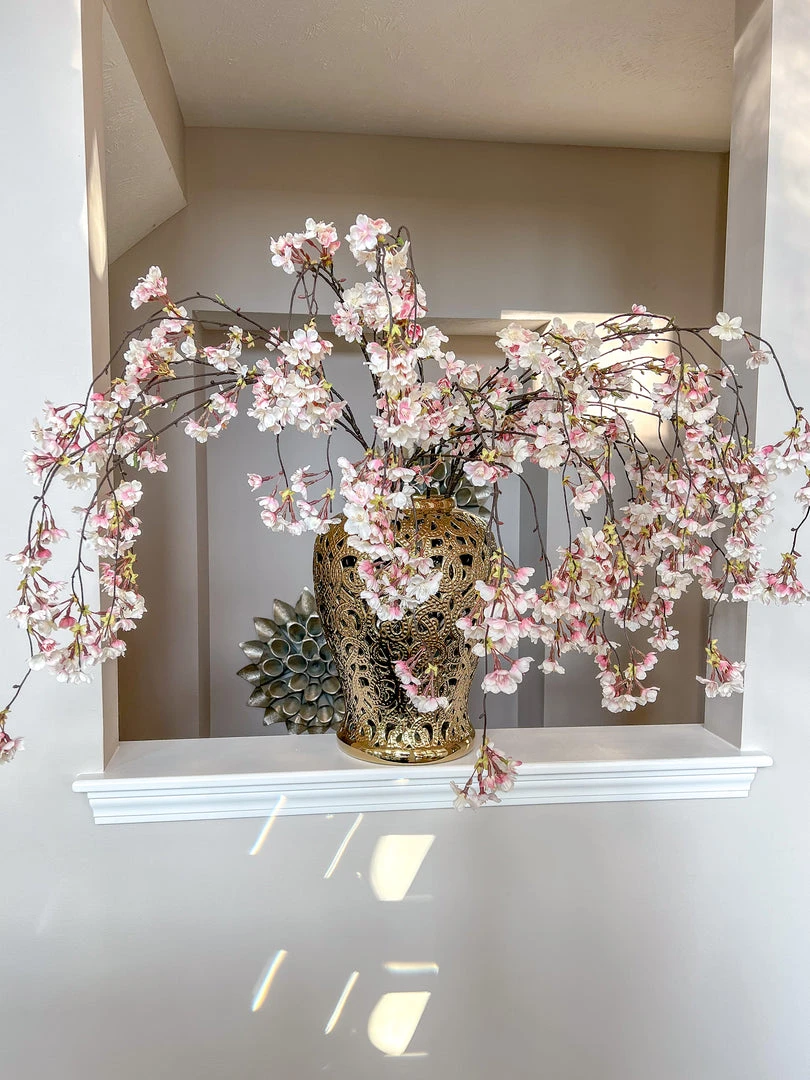 Description: This hanging cherry blossom stem is the perfect accent for your holiday display! Perfect for a tall vase in an entryway and can be used year round!