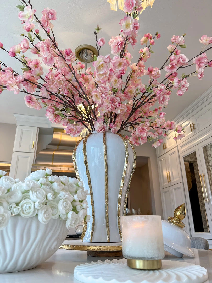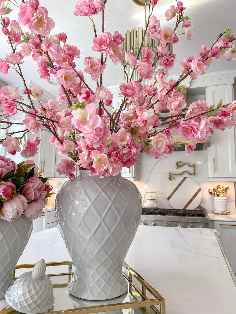 Description: These faux cherry blossoms are great to style during any season! The stunning colors at a pop to any room.