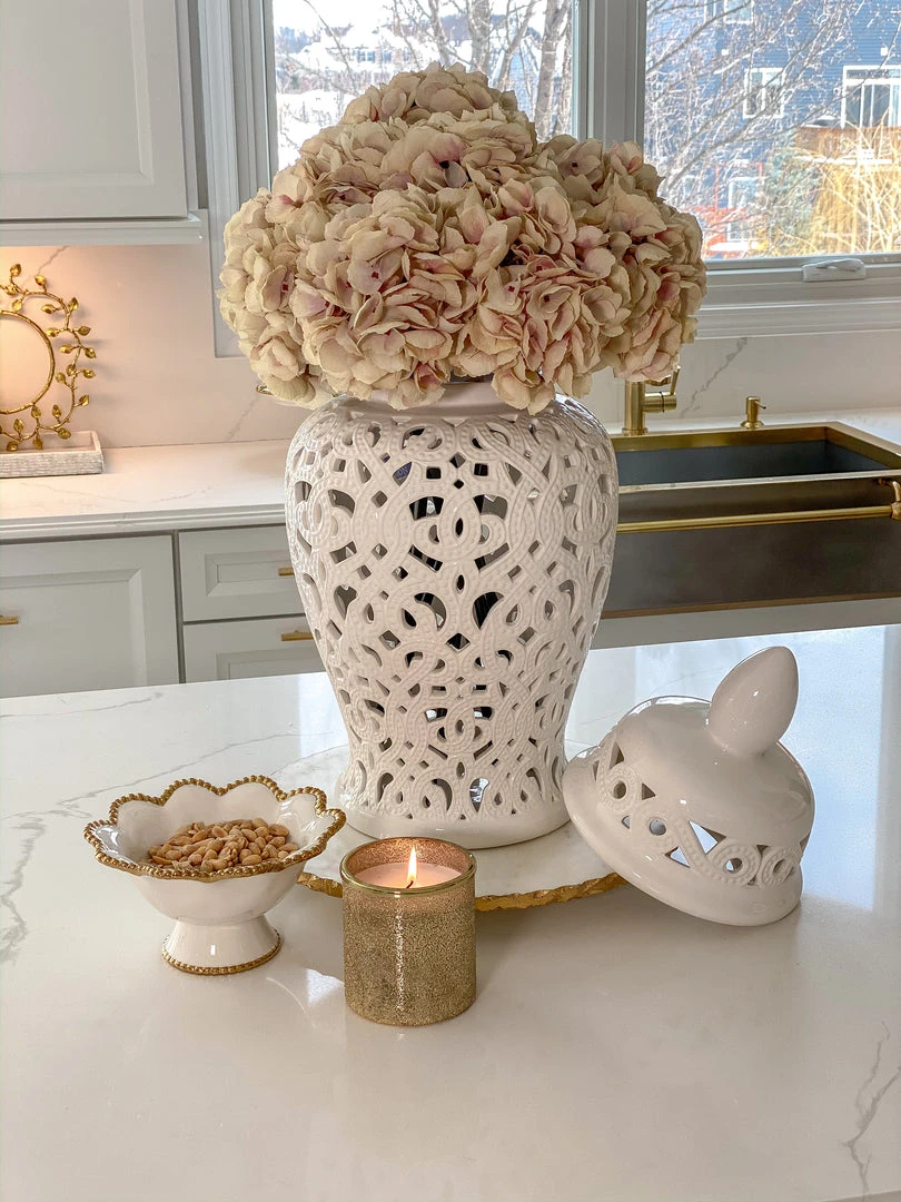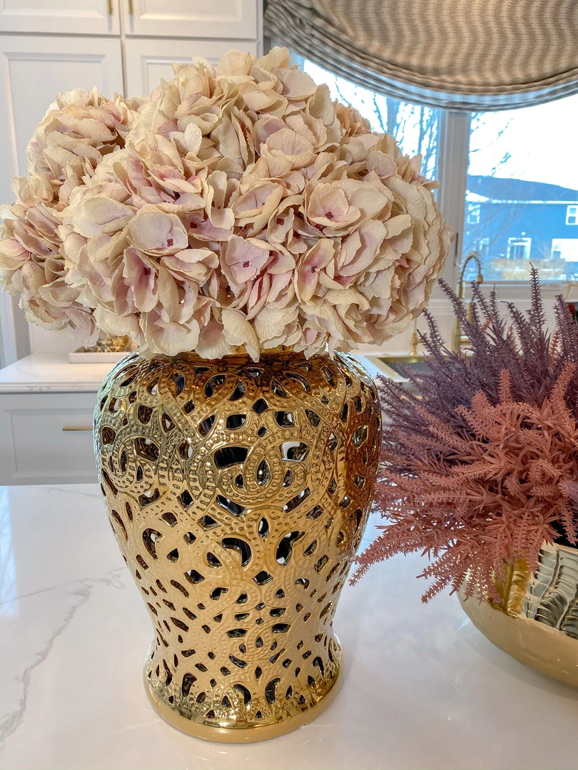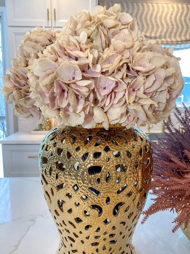 Description: This hydrangea features a beige color with blush undertones for a stunning look during any season. Style in a bowl or vase for a elegant look in your space.