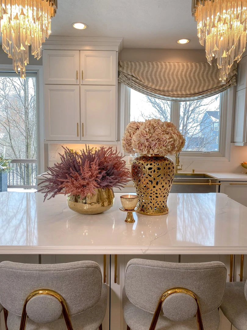 Inspire Me! Home Decor White Ceramic Vase With Stunning Gold Floral Detailed Center