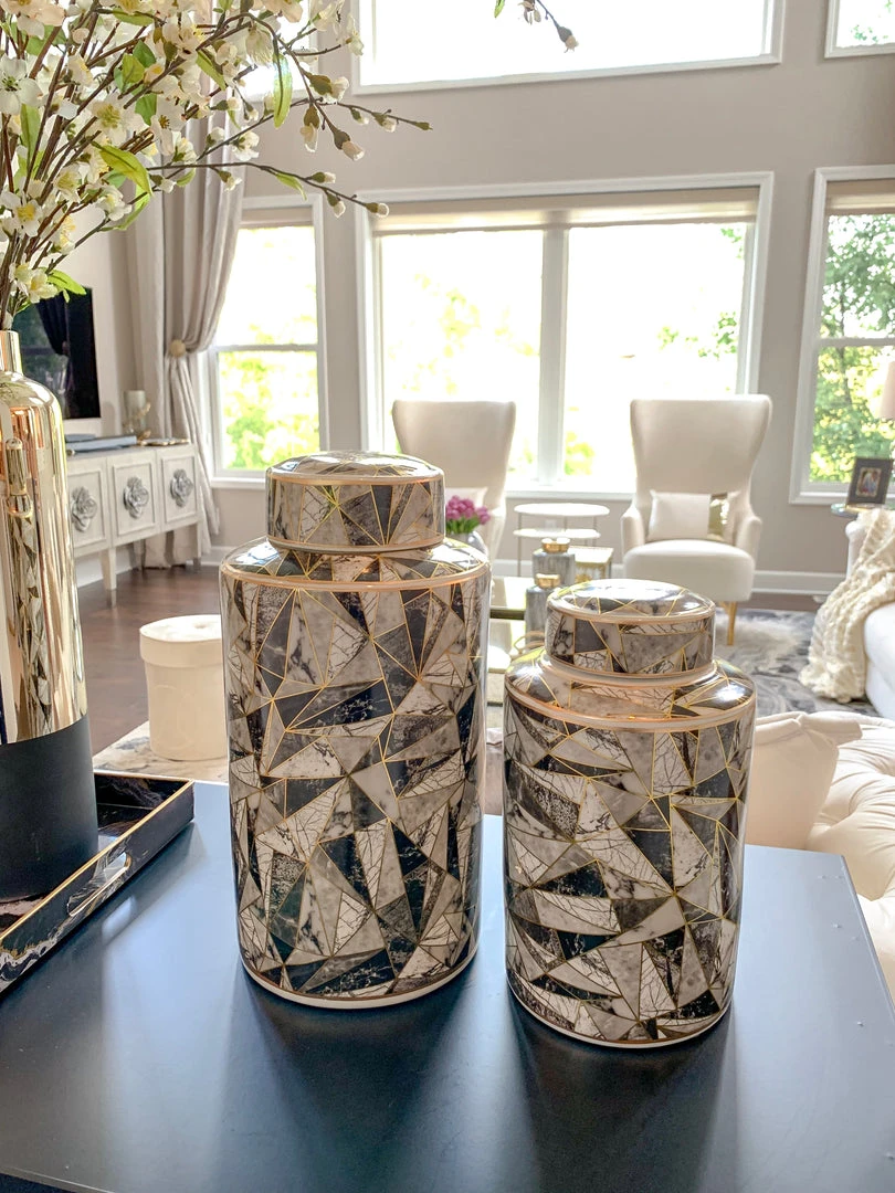 Inspire Me! Home Decor White Ceramic Candle Holder With Gold Elegant Details (2 Sizes)