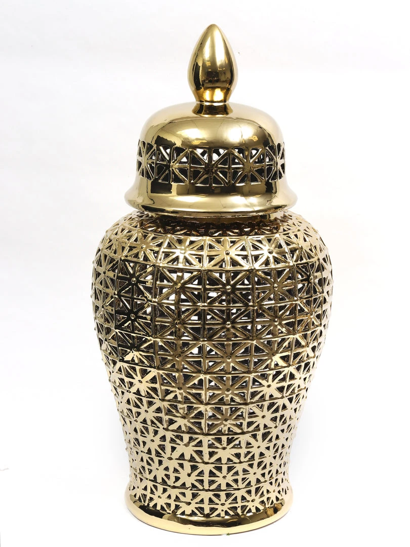 Description: This ginger jar will make a great addition to your home decor! Displayed with your favorite florals or on its own, either way this piece will make a dynamic floor piece!