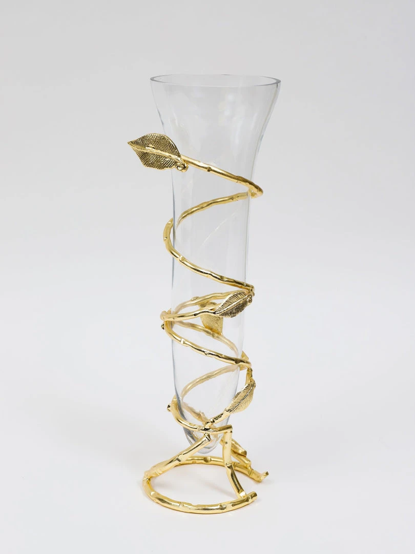 Description: Slim glass vase with stunning gold leaf design that adds a modern and expensive look to any bundle of flowers in any room.