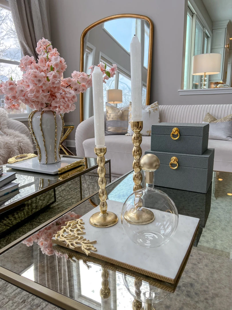 Inspire Me! Home Decor Large Rectangular Marble Tray With Cherry Blossom Details