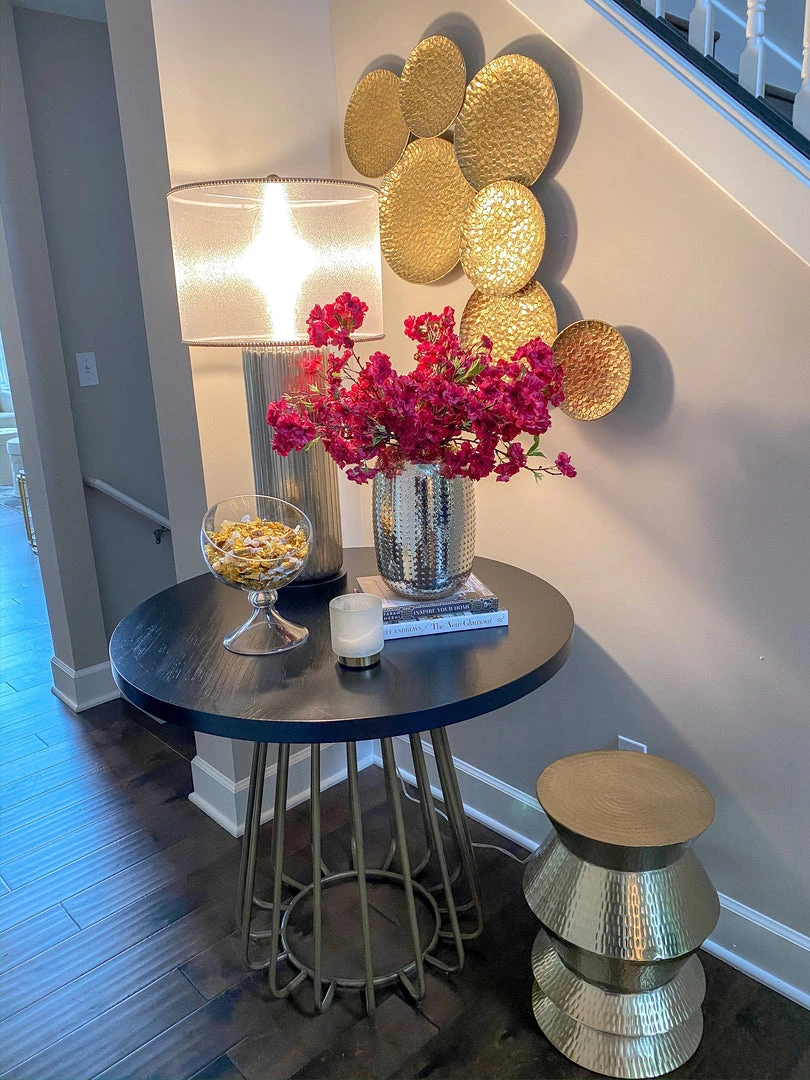 Inspire Me! Home Decor Round Marble Tray With Gold Edge And Metal Details