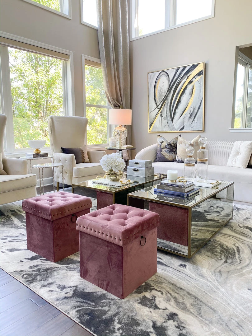 The Inspire Me! Home Décor Anastasia Ottoman features soft tufted velvet upholstery and is extremely versatile in its functionality. It provides comfortable seating for your family members and guests and allows items to be stored neatly inside simultaneously. You can also use it as a foot rest. It provides a good amount of space for hidden storage. Great for shoes, small toys, remotes, wires, and so much more. Featuring metal studs and handle detailing in brushed brass, it instantly adds a luxurious touch to your home. Use it in the entryway to sit down while you slip on your shoes in the morning, place it in your living room for extra seating, or use it in your bedroom as a beautiful accent piece. This ottoman assembles in just a few seconds and no tools are needed, so you can put it to use right away without worry. Moreover, it folds flat when not in use. Fantastic for your own space and also great as a housewarming gift because of its versatility and usefulness.