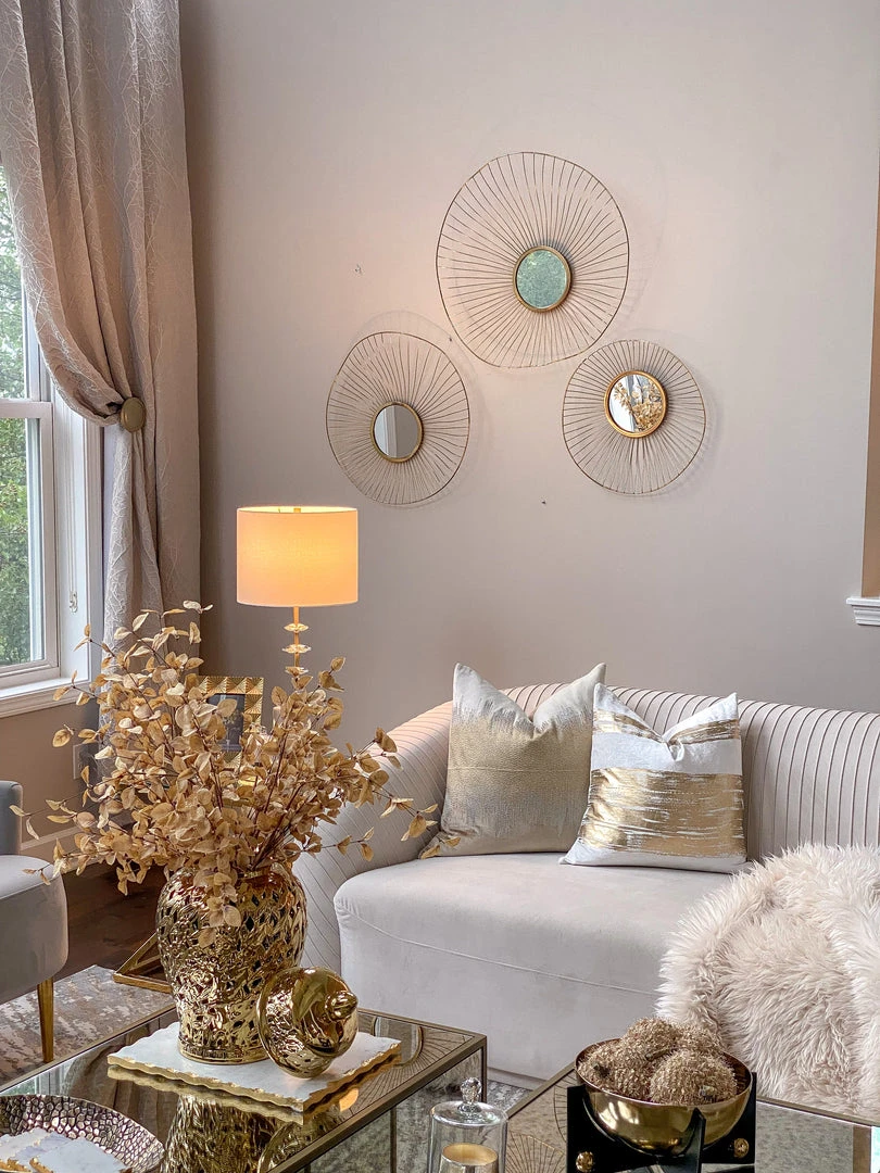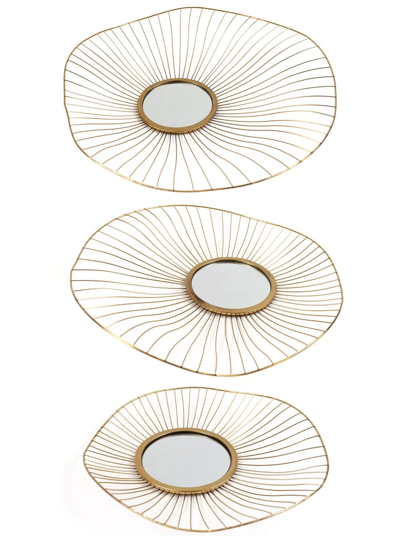 Description: This set of abstract circles adds dimensional elegance to your decor. The central mirrors add a nice touch of glam to this design!