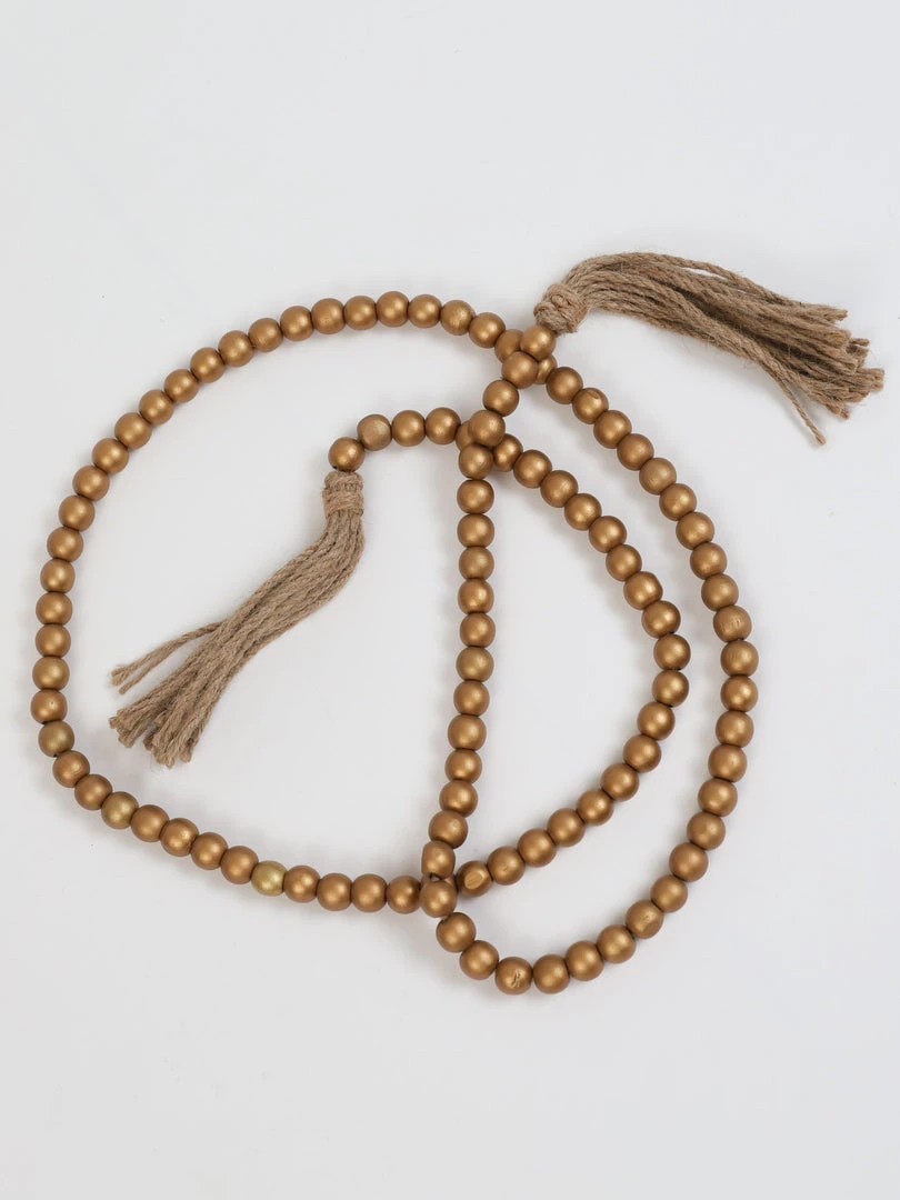 Description: This wooden garland is a very substantial piece and a stunning addition to any tree or bowl for the holidays. we love the beading and how it ties back to our metallic decor!
