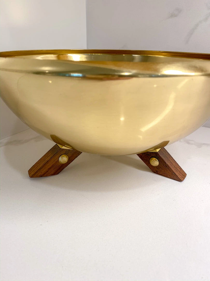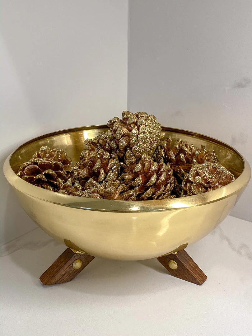This gold finish bowl features wooden legs and is the perfect piece to add to your collection for the holidays! We love to mix wood and metal- use this to hold your favorite ornaments!