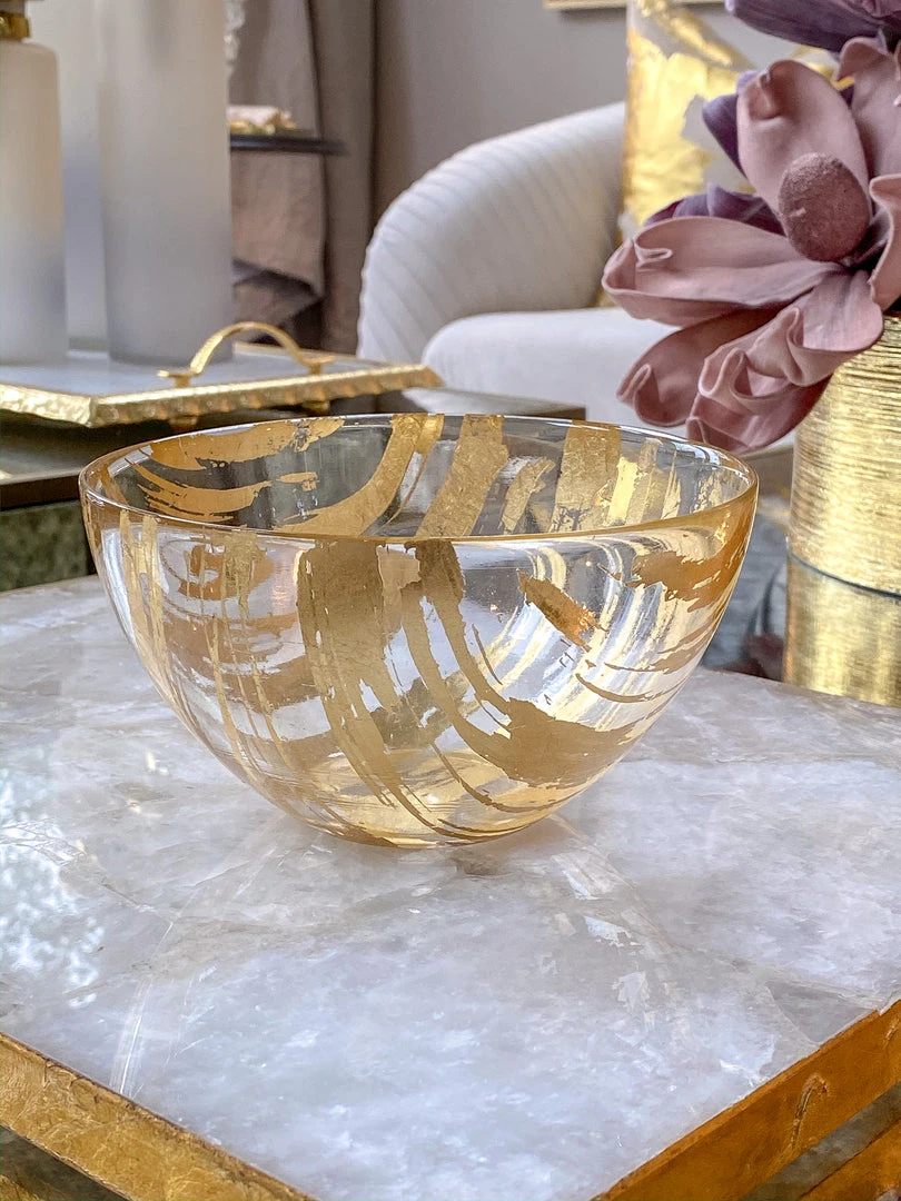 This brushed glass bowl is perfect for salads, snacks and much more! We love the abstract metallic brush marks.Â