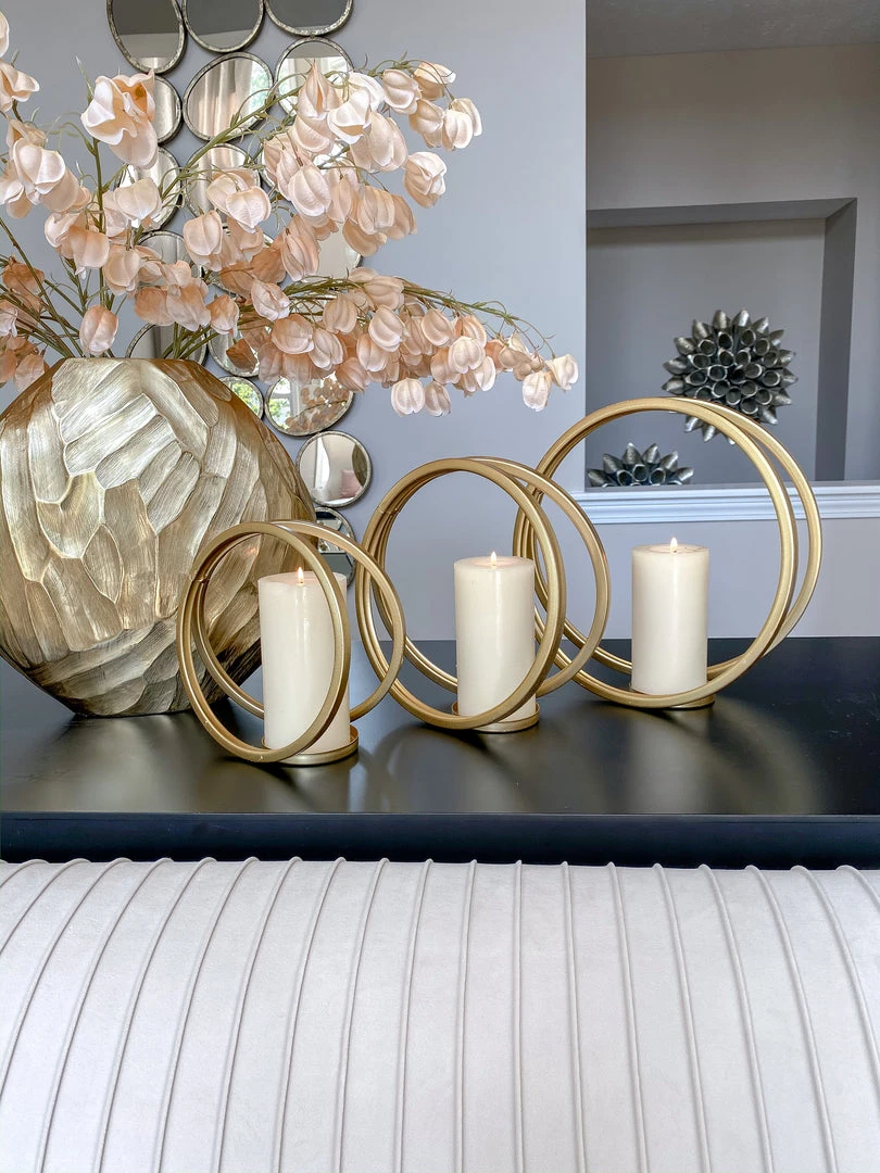 Description: This beautiful set of three candle holders are a simple and elegant way to show off your favorite candles! Each candle holder comes with a glass pillar to keep your candles safe.