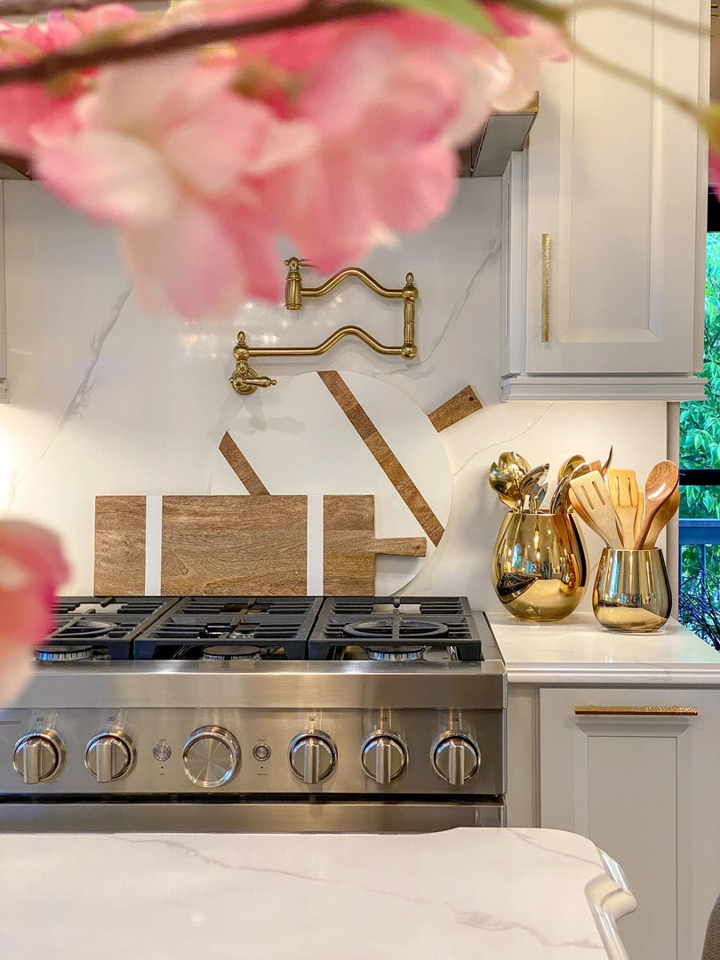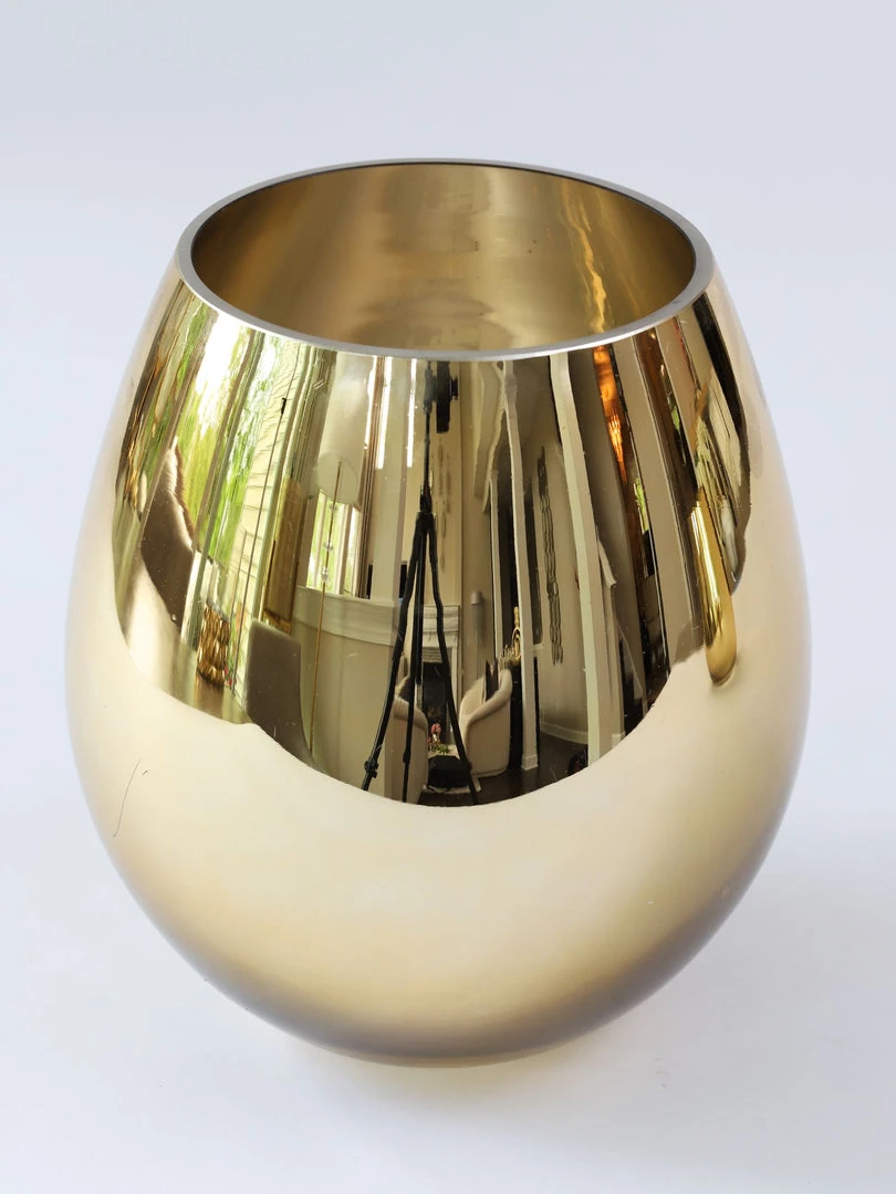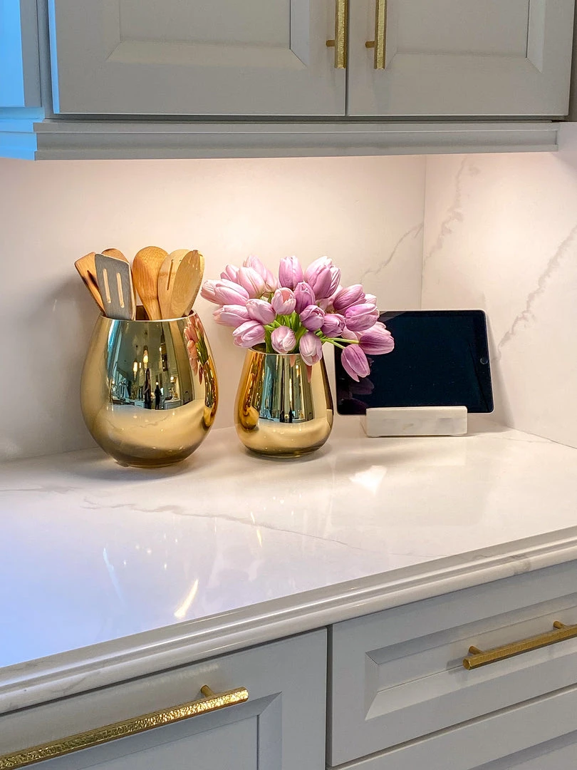 Description: This elegant gold glass vase can serve multiple functions! Fill it with your favorite florals or style it with your kitchen utensils! Available in 2 sizes!