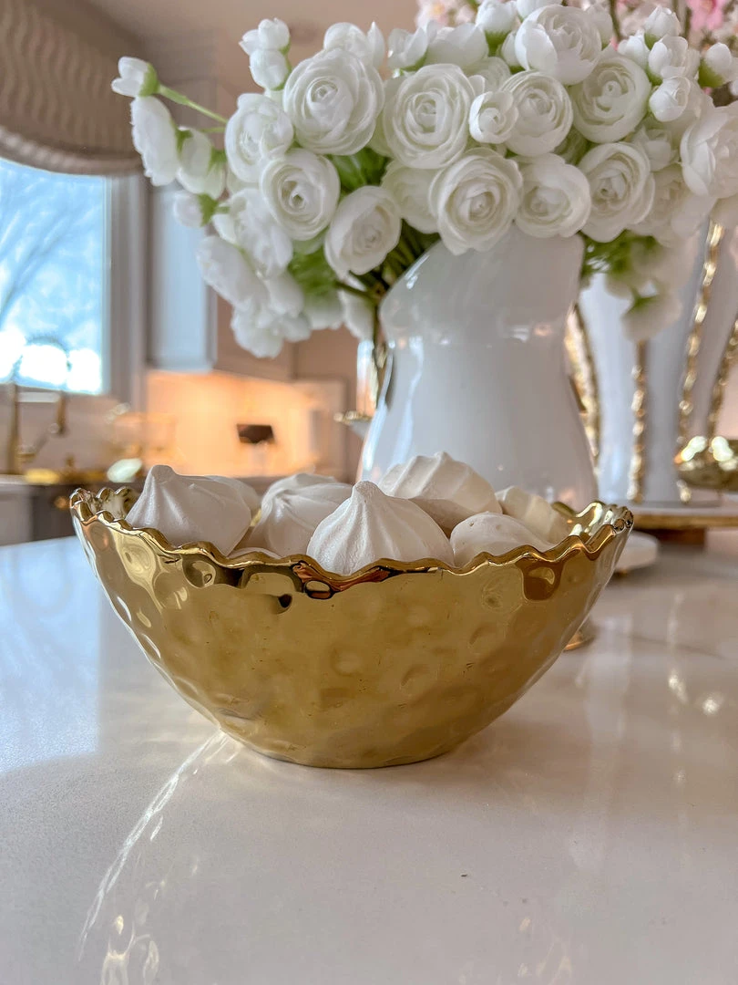 Description: This medium-sized hammered serving bowl will look great serving up your favorite dish and it’s the perfect size for sharing snacks as well.