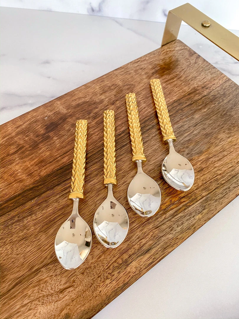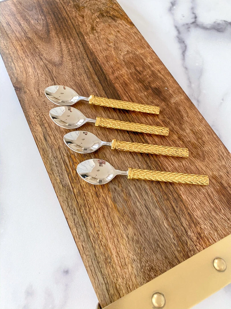 These gold herringbone spoons are the perfect to style with your favoite tea cups! They are the cutest accessory for your coffee station.