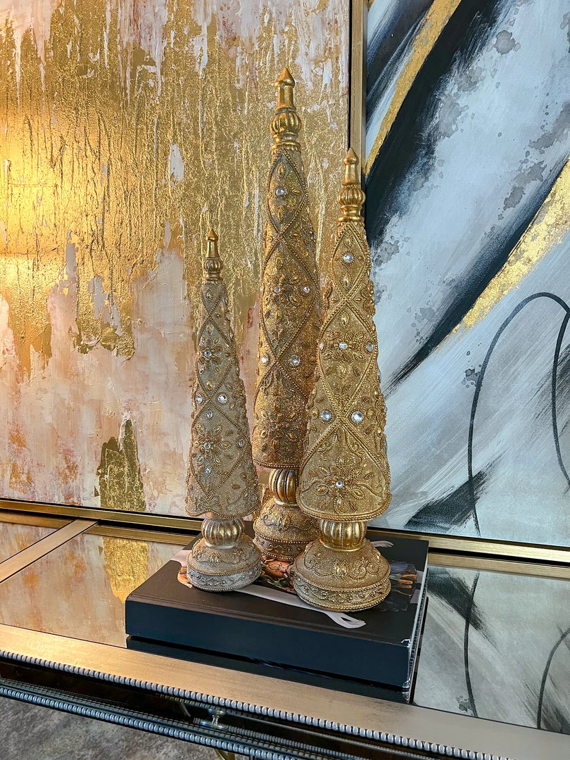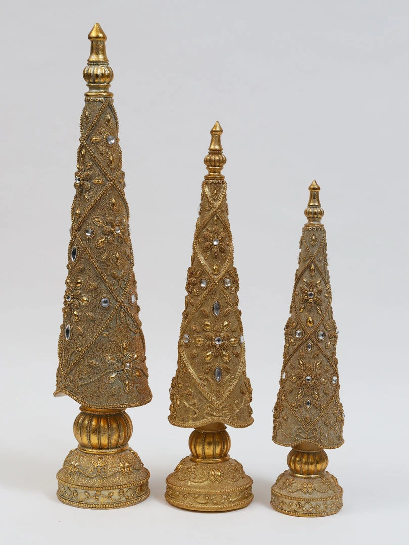 Description: These ornate antique gold jeweled trees are absolutely timeless! They make a stunning holiday display.