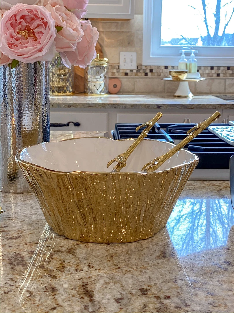 Inspire Me! Home Decor Gold Branch Centerpiece With 2 Glass Crackled Bowls