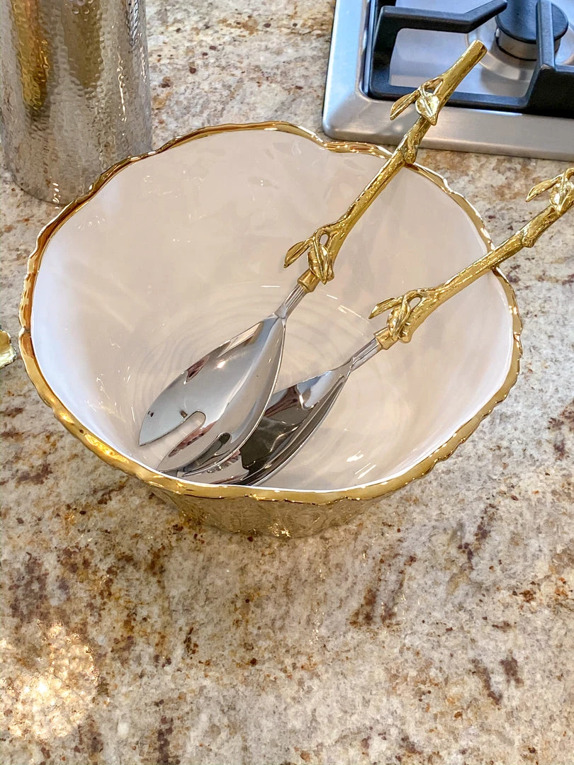 This server set features a two-toned leaf design and is perfect to display in a jar with your other server sets, or to use while entertaining guests.Â