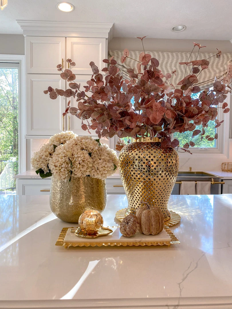Inspire Me! Home Decor White Ceramic Vase With Stunning Gold Floral Detailed Center